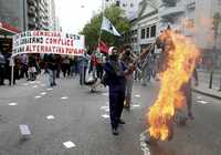 También la proclama leída en Montevideo la noche del viernes, después de la marcha, hizo duros reclamos: "Usted (Bush) está haciendo un esfuerzo por dividirnos y por eso quiere negociar acuerdos individuales... Usted se ha convertido en enemigo de la democracia, en enemigo de la libertad, en un ideólogo que está en las antípodas del mejor pensamiento latinoamericano de paz, de libertad, de soberanía que construyeron Hidalgo, Sandino, Martí, Bolívar, Artigas o Tiradentes (...) Usted debería pagarnos por los daños y el dolor ocasionados a los miles de presos, torturados, desaparecidos, perseguidos y asesinados que tuvieron nuestros pueblos, causados por las dictaduras que usted y su gobierno, y los gobiernos que le antecedieron en su país, apoyaron".
