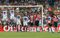 Ampliar la imagen El rojiblanco Gonzalo Pineda tiró elevado hacia la meta de Pumas Foto: Víctor Camacho