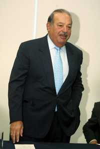 El empresario Carlos Slim Helú en la conferencia de prensa que ofreció ayer en las instalaciones de la Torre Inbursa