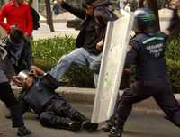La embajada de Estados Unidos fue escenario del repudio que generó la visita de George W. Bush a México. Cientos de estudiantes, integrantes de organizaciones sociales, políticas y sindicales marcharon desde el Hemiciclo a Juárez para realizar una protesta, pero varios darketos y "grupos de choque" provocaron un enfrentamiento con granaderos.