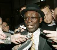 El ministro de Recursos Petroleros de Nigeria, Edmund Daukoru, fue rodeado de periodistas en su llegada a Viena, Austria, donde participará en la reunión de la OPEP