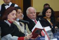 Angeles González Gamio, Fernando Valdés, Andrés Henestrosa y María Dolores González Casanova, la noche del martes, durante la presentación del libro Andanzas, sandungas y amoríos, del escritor oaxaqueño