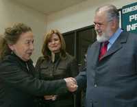 Las titulares de las comisiones de Derechos Humanos de las cámaras de Senadores y Diputados, Rosario Ibarra y Omeheira López, respectivamente, con el titular de la CNDH, José Luis Soberanes, en la presentación de informe sobre el caso Oaxaca