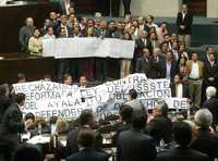 Diputados del PRD durante la protesta del jueves en San Lázaro contra la iniciativa de reforma a la Ley del ISSSTE.