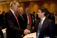 Luis Alberto Moreno (a la derecha), presidente del Banco Interamericano de Desarrollo, ayer en la asamblea anual de gobernadores del BID que se celebra en Guatemala