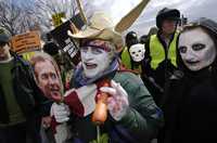 Manifestantes disfrazados participan en la marcha del monumento a Abraham Lincoln al Pentágono.