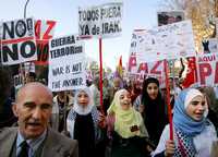 Con una multitud indignada por las "víctimas de allí y de aquí", en alusión a los 191 muertos de los atentados del 11 de marzo de 2004, perpetrado por un comando islámico como respuesta al apoyo del anterior gobierno, del presidente derechista José María Aznar, a la guerra, Madrid acudió al llamado internacional para proclamar en todos los continentes el rechazo a la estrategia belicista de la Casa Blanca republicana en Irak.