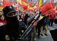 A la protesta acudió el líder de la derecha, Mariano Rajoy, y se gritaron consignas contra el presidente del gobierno, José Luis Rodríguez Zapatero, al que acusaron de ceder al "chantaje" de ETA y de "traicionar" a las víctimas del terrorismo.