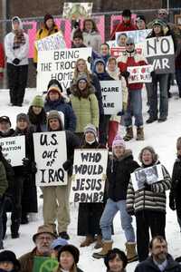 "No arrojen bombas, arrojen a Bush", se alcanzaba a leer en una pancarta entre un mosaico de lemas contra la guerra. "El pueblo estadunidense quiere que esta guerra se acabe. Ese fue el mensaje que enviaron en las elecciones de noviembre. ¿Cuándo empezarán a ser escuchados por parte de los políticos?", declaró Robbins ante los manifestantes.
