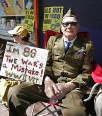 "Hey, hey, Tío Sam, recordamos a Vietnam/No queremos tu puta guerra en Irak", coreaban veteranos militares. "Regresen a casa a mi hermano", se leía en una pancarta, mientras la hermana del combatiente explicaba que algunos soldados no tienen el mínimo equipo de seguridad cuando los envían a las batallas, mientras a su alrededor otros familiares denunciaban el trato que reciben algunos de los heridos al regresar a casa.
