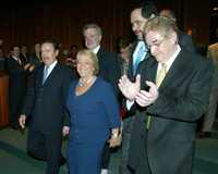 En la mesa de honor estaban, además de Calderón, su esposa Margarita Zavala y Michelle Bachelet, los presidentes de la mesa directiva de la Cámara de Diputados, Jorge Zermeño, y de la Suprema Corte, así como la canciller Patricia Espinosa.