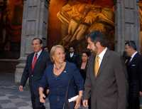 La presidenta de Chile, Michelle Bachelet, y Juan Ramón de la Fuente, rector de la UNAM, arriban al Anfiteatro Simón Bolívar del Antiguo Colegio de San Ildefonso