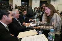 La legisladora panista Paz Quiñones esperó en la puerta del recinto a que los manifestantes llegaran al recinto de Donceles y Allende, desde donde operó para que se permitiera el ingreso a un grupo de 10 personas, entre ellas el presidente de la Unión Nacional de Padres de Familia, a jóvenes de Dignidad Ciudadana y de los Caballeros de Colón.