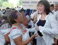 La secretaria de Desarrollo Social, Beatriz Zavala Peniche, durante la entrega, ayer, de recursos del programa Oportunidades, en Izamal, Yucatán