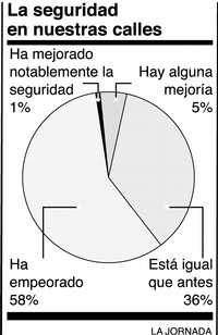Ayer publiqué el resultado de un sondeo sobre el tema de la inseguridad: casi 60 por ciento de los encuestados opinó que ha empeorado en los cuatro meses del gobierno de Felipe Calderón. Hay un dato adicional: según cifras de las autoridades, se han contabilizado 400 asesinatos en lo que va del año, incluido el de la hija del general Luis Humberto López Portillo, y su esposo. Sin embargo, la cifra podría ser mayor, porque no hay registro de los homicidios en que los cadáveres son incinerados o enterrados.