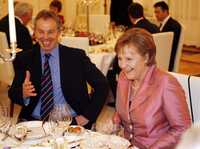 El primer ministro británico Tony Blair y la canciller alemana Angela Merkel, durante una cena que ofreció el presidente Horst Koehler en Berlín