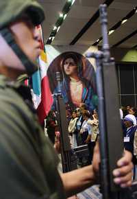 El prelado participó en la primera sesión del tercer Congreso Internacional Provida: Manipulación de embriones genéticos, en cuya inauguración destacó la presencia de una banda de guerra con miembros del Ejército que llevaban armas largas y con quienes se realizaron los honores a la bandera.