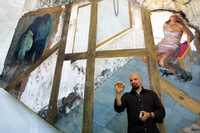 Cuernavaca, Mor., 24 de marzo. Al interior de una jaula de tablaroca y ventanas de cristal, Rafael Cauduro dice: "Pero luego me avientan cacahuates", como en un zoológico.
