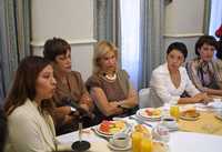 La diputada perredista Leticia Quezada toma la palabra durante la reunión convocada por la ALDF. Escuchan Elba Garfias, Guadalupe Loaeza, Estela Damián y Patricia Mercado