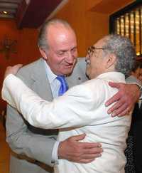 Gabriel García Márquez recibe los parabienes, ayer, del rey Juan Carlos