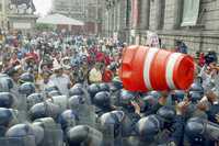 Después del mediodía ocurrió un conato de enfrentamiento en las inmediaciones del Senado, cuando los manifestantes intentaron ingresar a las instalaciones y lanzaron varios objetos contra los granaderos. Sin embargo, el incidente no pasó a mayores.