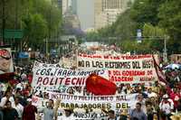 Ampliar la imagen Marcha de integrantes de STUNAM, SITUAM, UNT, IPN y SME ayer en avenida Juárez rumbo al Zócalo, en protesta por la aprobación a las modificaciones a la Ley del ISSSTE Foto: Carlos Ramos Mamahua