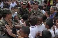 El jefe del ejército colombiano, Mario Montoya (arriba lado derecho), ayer en un vecindario en Medellín. El gobierno de Alvaro Uribe no descarta demandar al diario Los Angeles Times por divulgar supuestos nexos del general con paramilitares