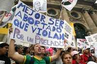 Con pancartas dirigidas a la Iglesia católica, integrantes de diversas agrupaciones políticas y sociales en favor del aborto se manifestaron ayer frente a la Asamblea Legislativa del Distrito Federal