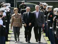 Bush, acompañado por su esposa, recibe afectuosamente a Lula en Campo David