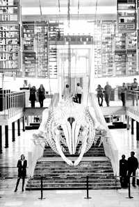 La ballena que navega en la megabiblioteca, trabajo que le fue encargado al artista visual Gabriel Orozco