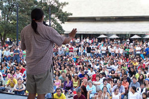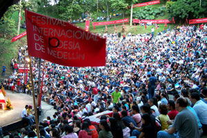 –¿Por qué no un festival masivo y popular? ¿Damos con las puertas de la poesía en las narices a la población que fluye hacia las fuentes? La pregunta no es inocua ni inocente, como algunos de nuestros poetas críticos que desearían detentar la propiedad privada sobre lo inefable y que babean porque la poesía sea sólo el privilegio de unos pocos. Es como si el amor y la libertad estuvieran destinados a unos elegidos y no a toda la especie humana. Esos poetas dicen emocionarse por la asistencia al Festival, pero niegan la inteligencia poética de la juventud y dudan de la acción de la poesía sobre la intimidad y la sensibilidad colectiva. La población que aplaude, ¿no lee? No saldrán nuevos poetas del pueblo, ¿qué lo demuestra? Lucía Estrada es considerada quizás la mayor promesa actual de la poesía colombiana escrita por mujeres. Desde 1991, cuando era una niña, ha sido parte del público en la mayoría de las ediciones del Festival. Y también ha leído poemas como poeta invitada. Nuestro público se ha nutrido y fortalecido al calor del vasto fuego poético. Este público busca a los autores, les habla de sus obras, es el pueblo que habla de la poesía en las calles, el que alimenta a sus poetas. No lo olvidemos. –¿Cómo has podido, con tu equipo organizativo, obtener los recursos económicos, persuadir voluntades políticas y burocráticas, resistir los embates del propio gremio intelectual, aprovechado las críticas y sorteado los ataques políticos? –Prometeo está constituida por un grupo de poetas que se identifica con unos principios, unos propósitos y una metodología de trabajo en el camino de la creación y de la difusión de la poesía. Hemos quebrantado todo tipo de obstáculos, carencias, presiones, desdenes y amenazas. Nuestra voluntad es férrea. Supe que la poesía también podía generar odio en los humanos. Y que muchos compañeros escritores, como los llamas, de espaldas a la matanza, han deseado el fracaso de nuestro esfuerzo, desposeídos de toda generosidad y grandeza. Piensan en el fondo que la poesía es sólo un género literario. Les gustaría que el Festival desapareciera. Su desasosiego es otra expresión de la naturaleza humana. La arcilla humana es frágil. Pero un asunto es la mezquindad y otro es la crítica. Sobre la crítica lúcida y la autocrítica cotidiana hemos construido un Festival considerado paradigma en el mundo, y una cadena de proyectos complementarios: la Escuela de Poesía de Medellín y los talleres de poesía, la edición de la revista Prometeo –con setenta y seis números en veinticinco años–, la edición de documentales para televisión y de un dvd-Rom con la historia audiovisual del Festival, que incluye una antología digital de poesía mundial. Y hemos desarrollado una acción solidaria para la fundación y fortalecimiento de nuevos festivales poéticos aquí y allá, en muchos lugares del mundo. –¿Cuáles son los principales obstáculos que has tenido que vencer y cuáles son no sólo las motivaciones sino los elementos coadyuvantes en el proceso de creación y crecimiento del Festival de Poesía? –Los obstáculos mayores que hemos afrontado surgen de la ignorancia del Estado sobre la naturaleza de la vida y de la poesía. Nuestro Estado es generoso con la guerra y con la muerte, y mezquino e indiferente con las expectativas de vida de la población. La tropa crece y la población se ve disminuida por la miseria, la desnutrición, el analfabetismo, la insalubridad. La poesía es inútil para los burócratas, pues es nuestra sociedad pragmática y utilitaria. El Estado recorta los fondos destinados a la cultura y al Festival y grava a todos con nuevos impuestos. Nos acercamos a las organizaciones sociales, pues hemos asimilado que será muy difícil realizar una acción poética en gran escala, para insuflar a la población del aliento de una vida nueva, en las condiciones actuales de guerra, y hemos comprendido que hay que acortar el camino hacia la paz de Colombia. Estamos convencidos de que no habrá presente ni porvenir posibles sin la poesía. La poesía es la vida de todos, misteriosa y abierta, que nos invita a sumergirnos en nosotros y en los otros, que también somos. –En su XVII edición, el Festival contabiliza la presencia 747 poetas de 131 naciones, ¿qué significa tener esta red de contactos con poetas del altísimo nivel?, ¿cómo podría aprovecharse más esta presencia y esta nómina en beneficio de la cultura y la paz del pueblo colombiano? –Nosotros contamos con el apoyo tácito de cientos de poetas en todo el mundo. Muchos de ellos han escrito artículos sobre el Festival que luego se han publicado en innumerables medios de comunicación de más de cincuenta naciones. En los hechos, son una red de asesores, consejeros y hermanos a lo largo y ancho del planeta. Estoy seguro que serán aliados fundamentales en el futuro próximo en la tarea de fortalecer el vasto proyecto poético colombiano y para alcanzar la paz definitiva en nuestro territorio, que hará de Colombia un país para la poesía y para la vida, material y culturalmente fundamental en la historia contemporánea. –Por último, dos preguntas. ¿Qué sigue para el festival después de este reconocimiento internacional tan emblemático?, ¿a qué aspira? Y tú, como poeta, siguiendo los ecos de Hölderlin, ¿qué sentido le encuentras a continuar escribiendo en tiempos de desesperación? –El Festival continuará existiendo con mayor energía y será un faro más visible en el mundo. Continuaremos con la tarea de llevar la poesía a todos los colombianos y los festivales a nuevos países; fortaleceremos la presencia de la poesía en los medios de comunicación y en la sociedad contemporánea; lucharemos por la confluencia de los poetas y artistas colombianos para fortalecer la imaginación creadora y emancipadora, y contra la censura provocadora y la autocensura, y participaremos de la configuración de una fuer