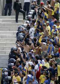 Mientras adentro del estadio Olímpico Universitario, Pumas y América disputaban uno de los clásicos del futbol capitalino, Pumas-América, afuera muchos de sus aficionados pasaron de los insultos a enfrentamientos con todo lo que encontraron a su paso, aunque la vigilancia policial evitó que hubiera mayores consecuencias.