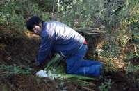 Tetlatzinga, Sierra Zongolica, Ver., 9 de abril. Entre los pinos, sobre la tierra cubierta de musgo, la ofrenda de flores silvestres que pusieron los hermanos Inés Ascención en el lugar donde cayó su madre ya se ha secado. Francisco, el menor de los varones, baja por la empinada ladera para señalar el lugar exacto, a unos 20 metros de un pequeño claro y a tiro de piedra del lugar donde levantaron sus lonas los soldados de la base de operaciones "García", del 63 Batallón de Infantería, 26 Zona Militar. Se coloca sobre las rodillas y las manos: "Así encontramos a mi...