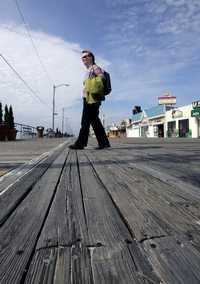 Una mujer camina sobre las tablas viejas de un muelle de Ocean City, New Jersey, ciudad que gastará 1.2 millones de dólares en conseguir madera de la Amazonia para repararlo. Los científicos urgen a tomar medidas para detener la deforestación de esa selva tropical