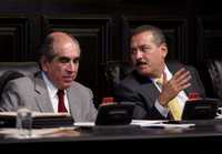 El senador perredista Pablo Gómez y el presidente de la Mesa Directiva, el priísta Manlio Fabio Beltrones, durante la sesión de ayer en el Senado de la República