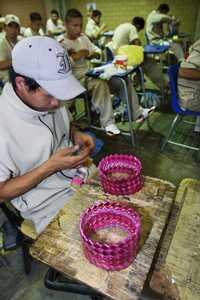 Envolturas de diversos productos, tarjetas telefónicas y encendedores son usados por los presos para elaborar originales bolsas, carteras y cinturones