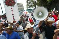 Mitin de obreros frente a la Secretaría del Trabajo en marzo pasado, luego que la dependencia colocó a Elías Morales en la dirigencia del sindicato minero