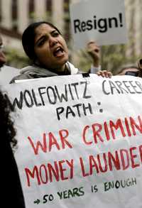 Manifestantes en Washington exigieron ayer la destitución del presidente del Banco Mundial, Paul Wolfowitz, durante una protesta frente a la sede del organismo