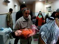 Un iraquí solicita en Ciudad Sadr ayuda médica para su hijo con síntomas de envenenamiento por cloro tras una acción de desconocidos