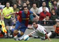 El equipo culé se retiró al descanso con el susto en el cuerpo, pero la realidad es que disfruta de la suerte de los campeones. En el último minuto lanzó un saque de esquina que el mexicano Rafael Márquez conectó con la cabeza y el balón llegó al argentino Javier Saviola, quien remató al palo y el balón se fue a la red tras rebotar en el defensor visitante Fernando Navarro.