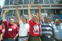 Miembros del sindicato minero, frente a las oficinas de su sindicato