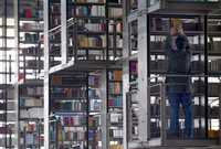 Con cautela y sin prisas se llevan a cabo las reparaciones de la infraestructura de la Biblioteca Vasconcelos, de Buenavista, mientras los jóvenes bibliotecarios revisan uno a uno los libros para corroborar que la clasificación sea la correcta.
