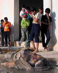 Estudiantes iraquíes observan cadáveres encontrados ayer en el patio de su escuela en la ciudad sunita de Ramadi, al oeste de Bagdad, Irak