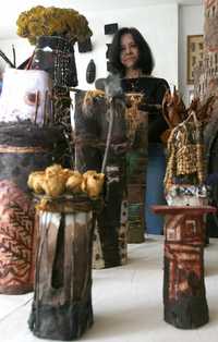 Marta Palau, ''artista a secas'', con sus kachinas (figuras labradas en madera) que exhibirá, además, con una instalación dedicada a las asesinadas de Juárez
