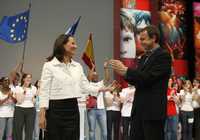 El presidente español, Rodríguez Zapatero, aplaude en Toulouse a Segolene Royal