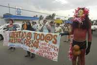 Oaxaca, Oax., 19 de abril. Miembros y simpatizantes de la Asamblea Popular de los Pueblos de Oaxaca (APPO) salieron a las calles para demandar la destitución del gobernador Ulises Ruiz Ortiz, la libertad de los "presos políticos y de conciencia" y el castigo a los responsables de la represión ocurrida en la entidad.