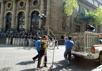 Ayer, antes del mediodía, personal de la SSP-DF empezó a concentrar en la esquina de Donceles y Allende las vallas metálicas que se colocarán en los alrededores del recinto legislativo, para evitar que los manifestantes tomen las escalinatas e impidan el acceso de los diputados a la sesión ordinaria del martes, en la que se prevé aprobar las reformas en materia de aborto.