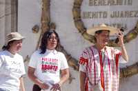 Integrantes de Católicas por el Derecho a Decidir y la actriz Jesusa Rodríguez durante la caminata informativa de ayer, del Zócalo al Hemiciclo a Juárez, en favor del aborto