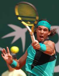Nadal responde con una potente devolución a un tiro de Federer, durante el abierto de Montecarlo