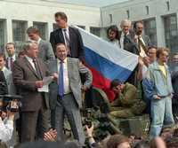 En ese contexto, el fallido golpe de Estado contra Gorbachov, emprendido en agosto de 1991 por la vieja guardia del PCUS, catapultó a Yeltsin a una posición de ventaja sobre su debilitado rival. Yeltsin, quien un mes antes había sido elegido presidente de Rusia, en ausencia de Gorbachov, declarado "enfermo" por los golpistas y en realidad recluido en Crimea, no dudó en instar a la población a la desobediencia civil, movilizando a sus seguidores contra el ejército.